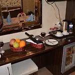 Для вашего комфорта в каждом из 36 номеров предусмотрели пресс для брюк и систему климат-контроля, а также мини-холодильник и кофеварку. Наряду с биде, отдельным туалетом и умывальником, в ванной комнате есть фен и тапочки. Здесь вы можете наслаждаться видом на город.